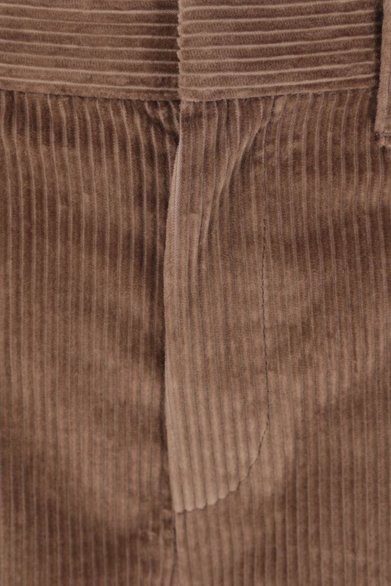 Brunello Cucinelli wide-leg trousers made of brown corduroy. Featuring a front closure with hook, button, and zipper, belt loops, multiple pockets, and a center crease.
