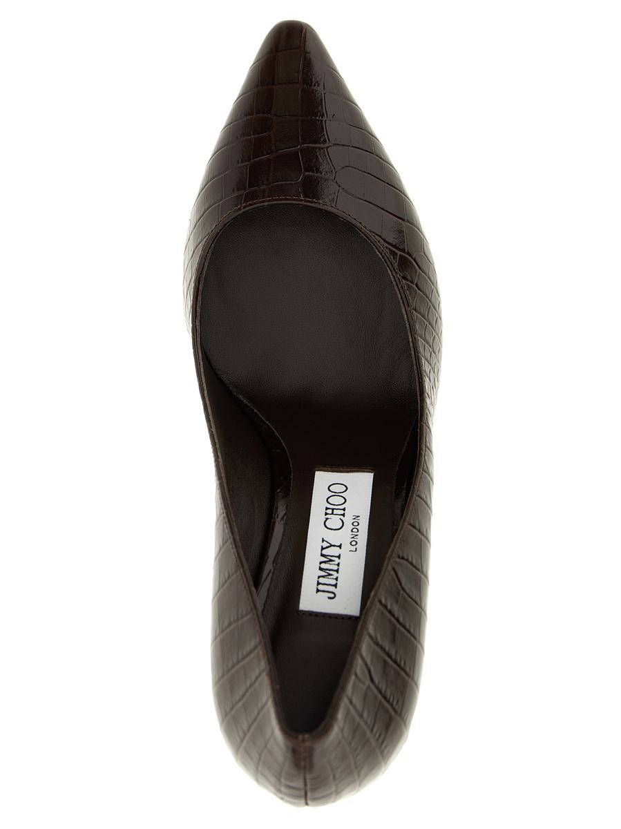 'Romy' leather pumps with crocodile-effect print, pointed toe, stiletto heel, leather sole