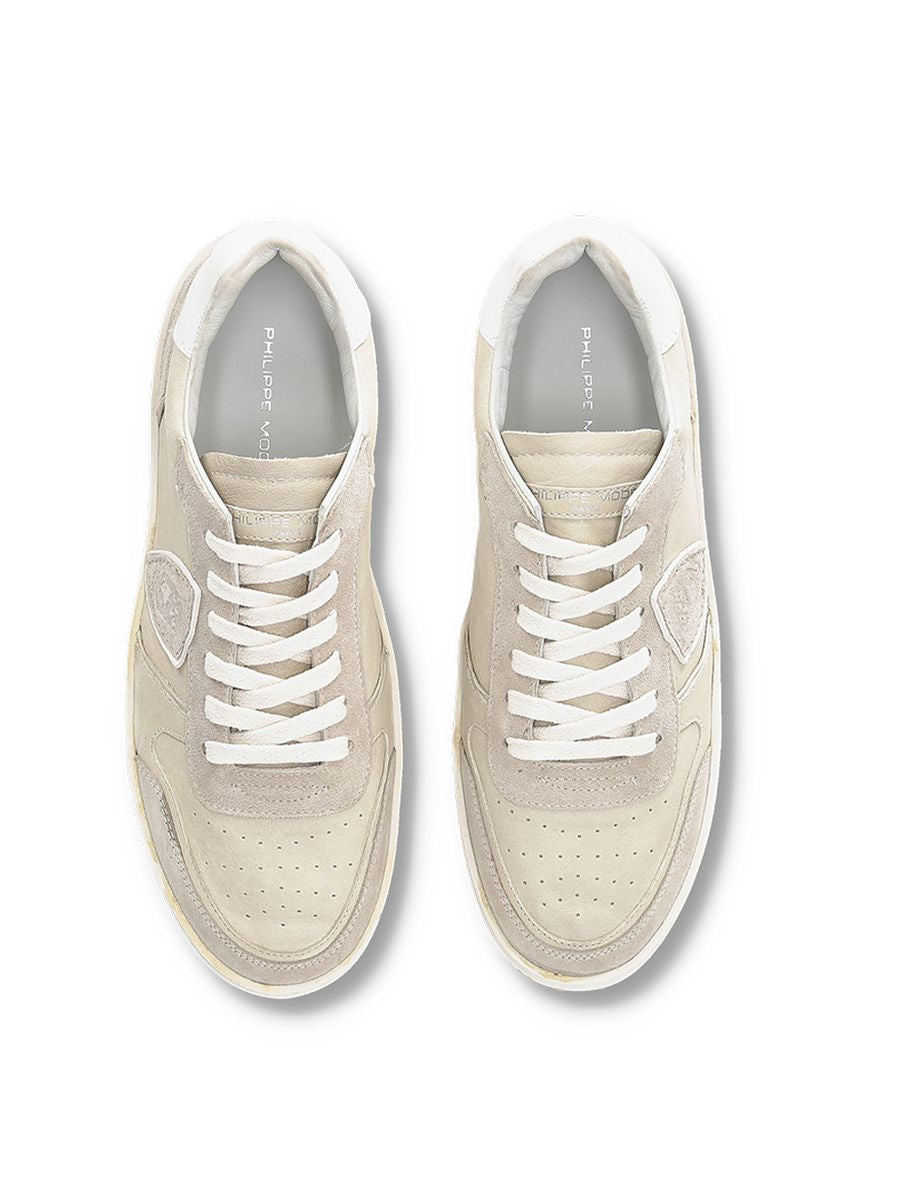 Low-top sneakers in leather and suede. Fabric finishes and logo details.. Crafted by Philippe Model, these sneakers blend elegance and comfort. The sand hue with suede details and a minimalist design make them perfect for any occasion
