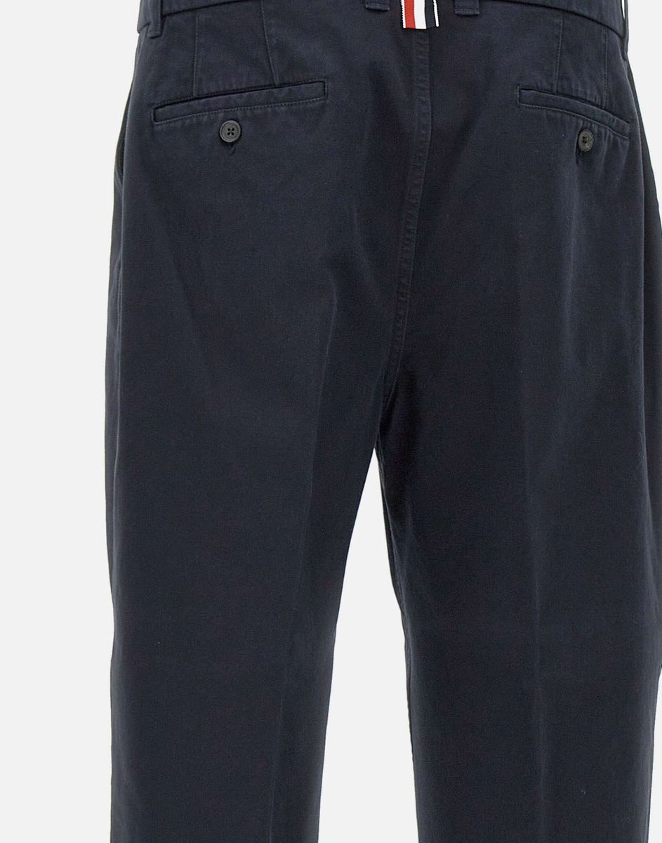 THOM BROWNE'S MELBOURNE PANTS ARE A SLEEK STYLE WITH A STRAIGHT-LEG CUT THAT GIVES A REFINED SILHOUETTE. THE FRONT CLOSURE CONSISTS OF A HOOK, BUTTON AND ZIPPER FOR A SECURE AND STYLISH FIT. THE TWO SIDE WELT POCKETS AND TWO BUTTONED BACK WELT POCKETS OFFER PRACTICALITY AND A TOUCH OF CLASS. THE ICONIC TRICOLOR PATCH APPLIED TO THE BACK ADDS A DISTINCTIVE BRAND DETAIL. WITH A HIGH WAIST, THESE PANTS COMBINE CLASSIC ELEGANCE AND MODERNITY, PERFECT FOR A SOPHISTICATED AND TIMELESS LOOK.