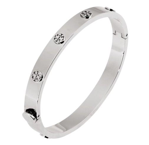 silver-tone stainless steel polished finish clip-lock fastening engraved logo